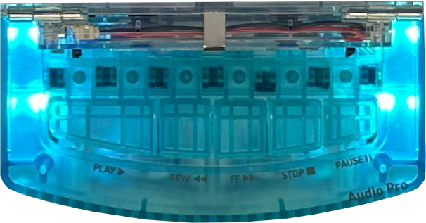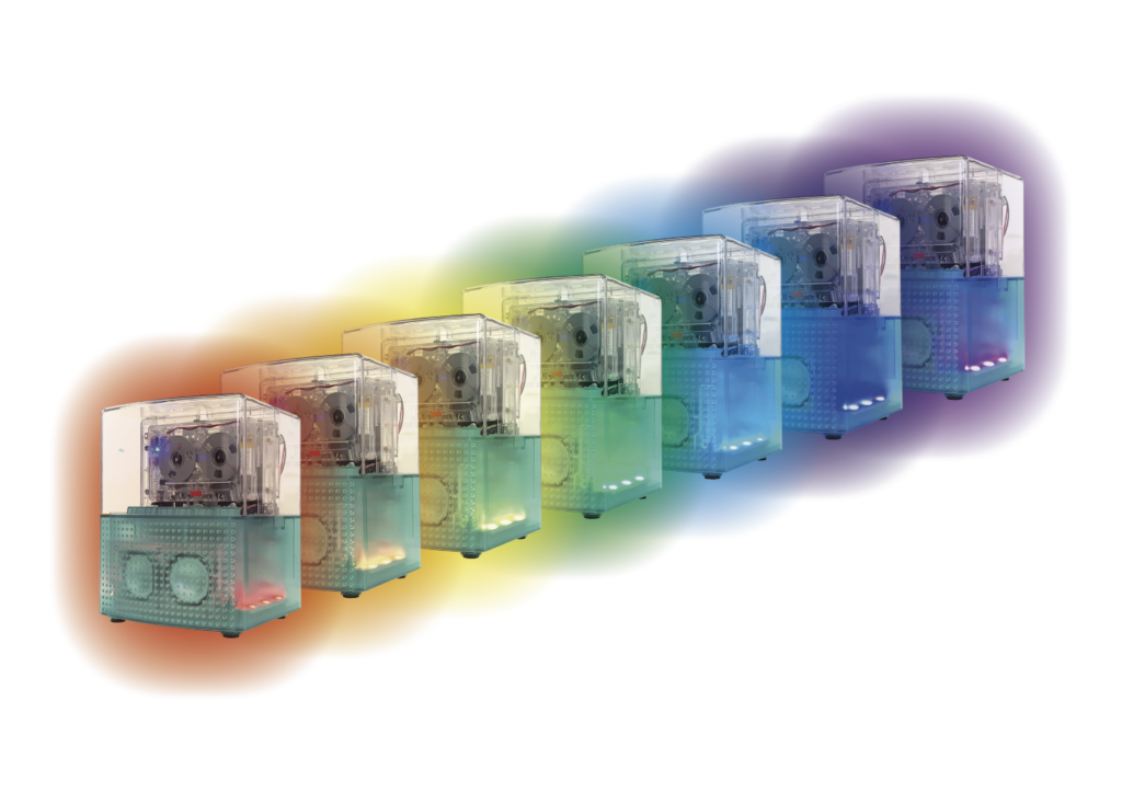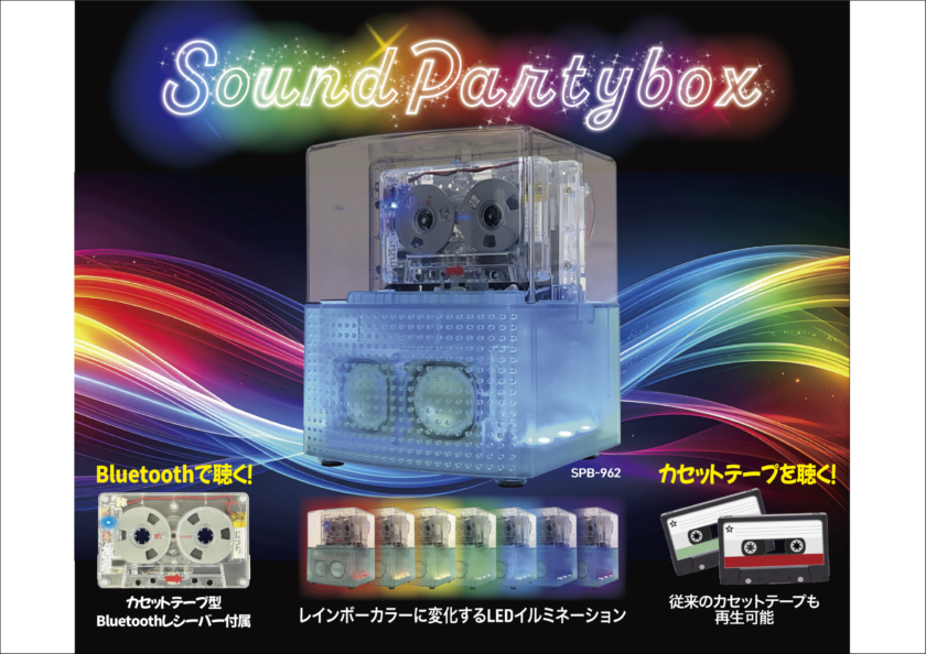 カセットテープはもちろん、付属のカセットテープ型Bluetoothレシーバーをセットしてスマートフォンの音楽を再生可能。色調がレインボーカラーに変化するLEDイルミネーションを搭載!