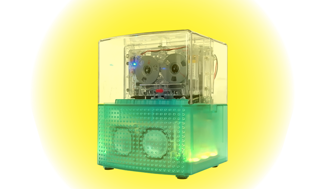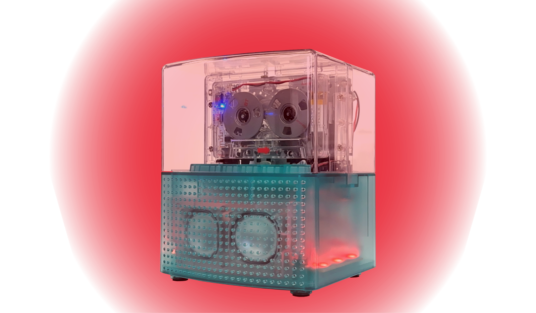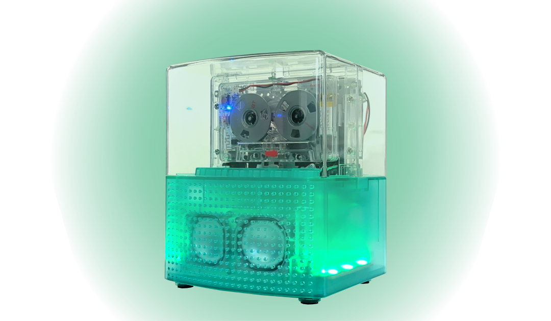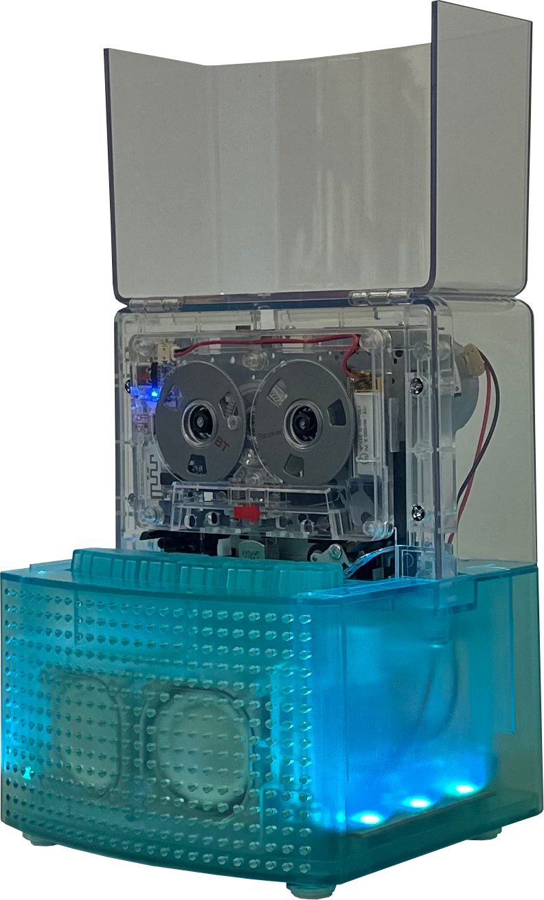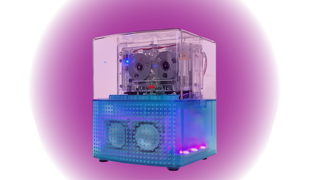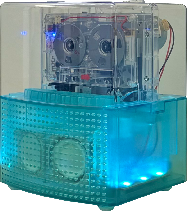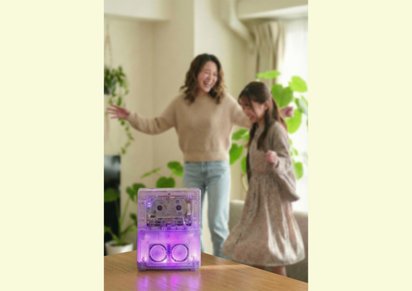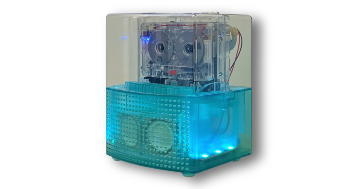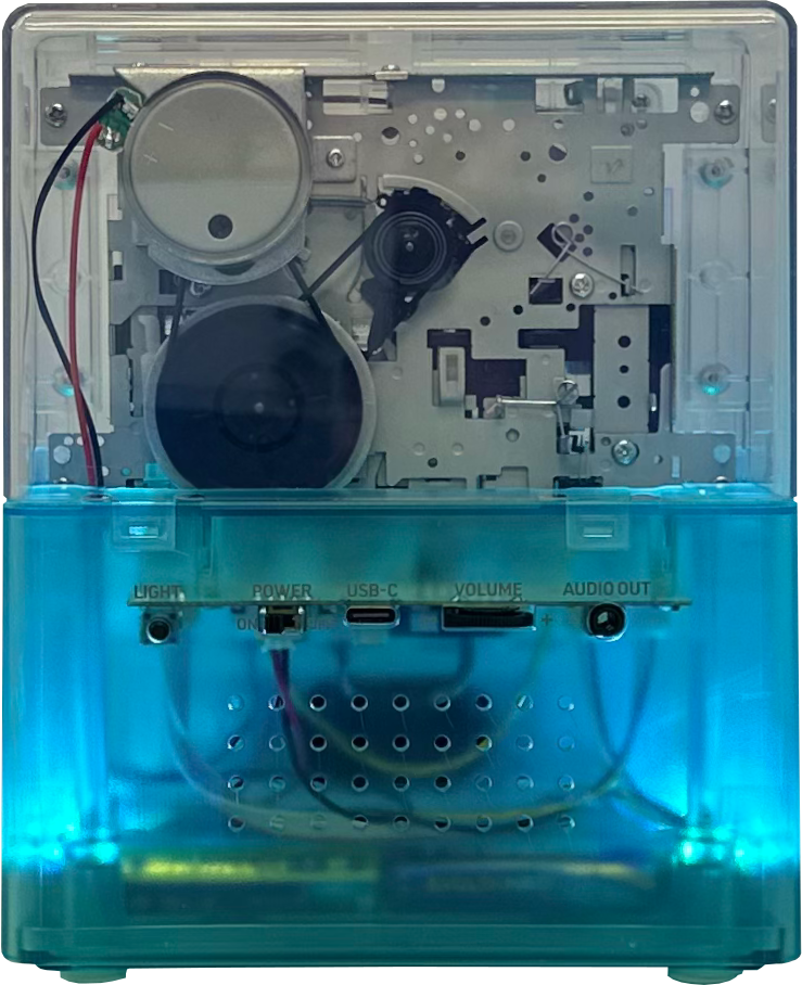 レインボカラーのイルミネーションが華やいだ空間を演出するカセットプレーヤー。